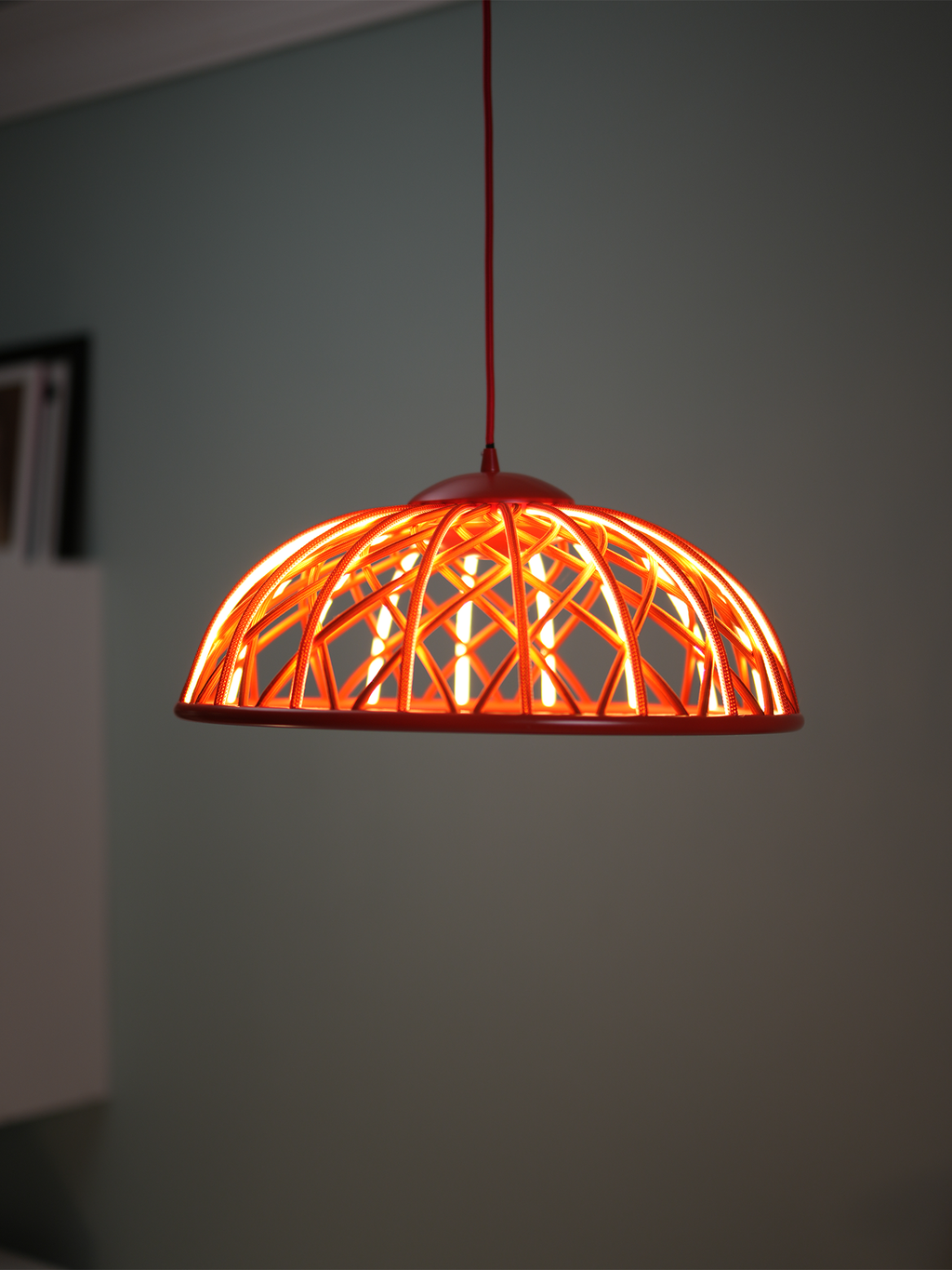 Ø450xH180mm red metal outer braided layer lampshade